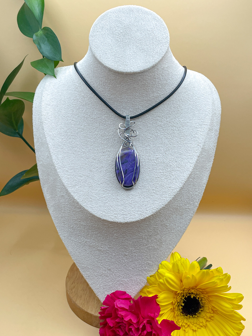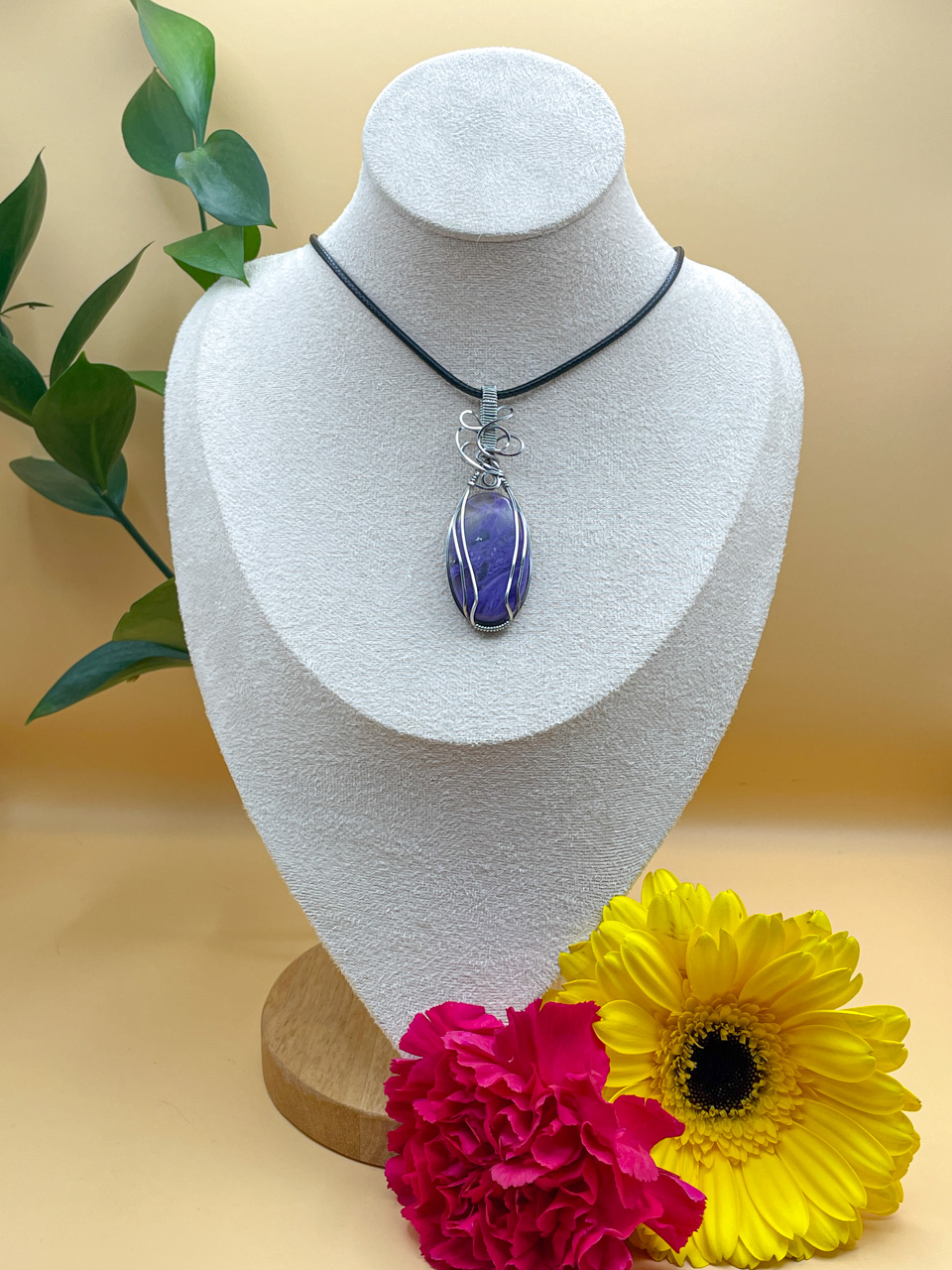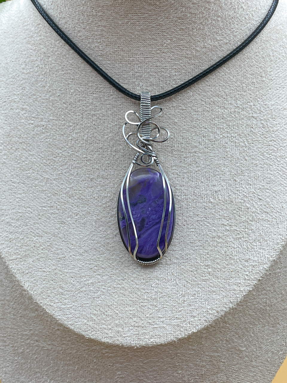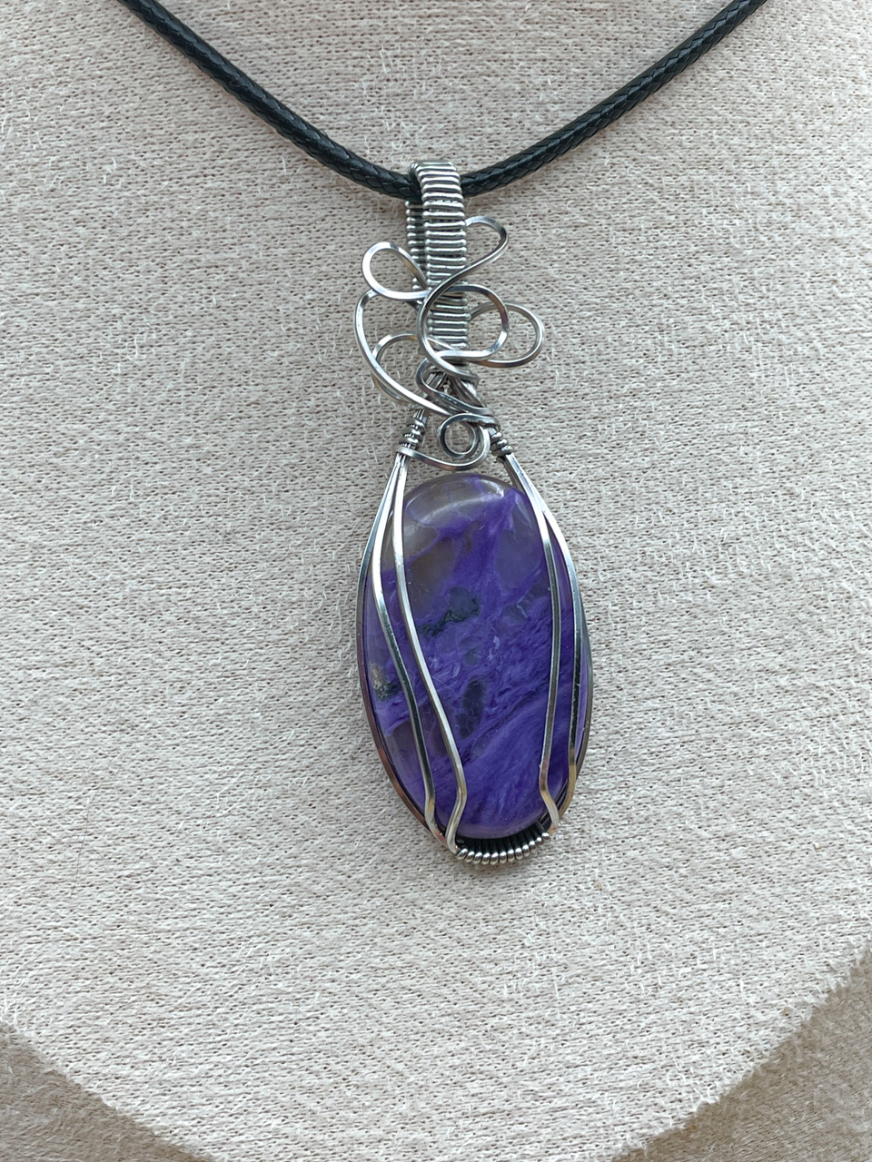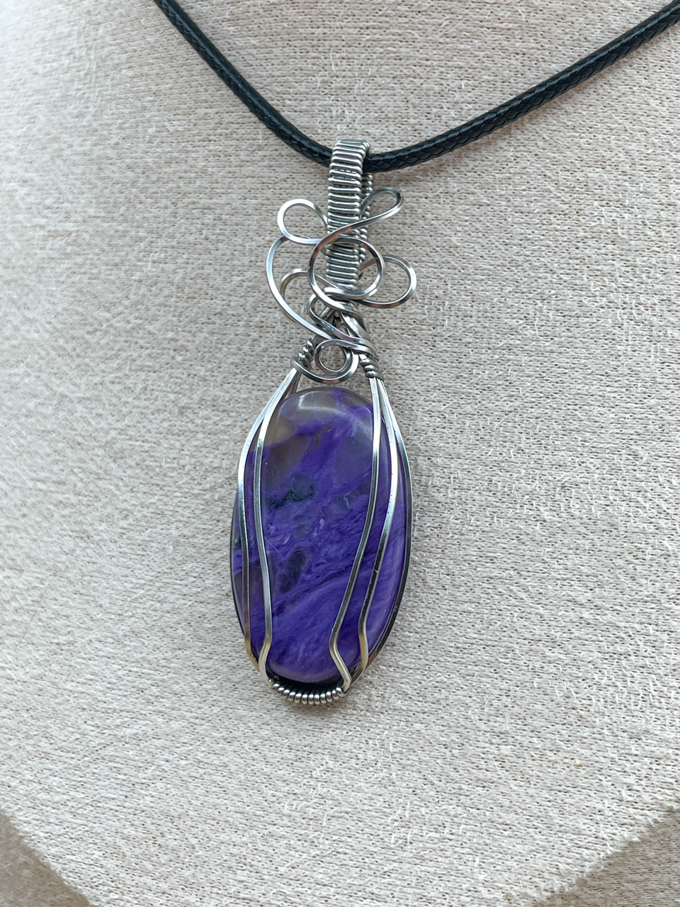 Velikost kamene včetně drátku: 2,2x6,6x0,6 cm. Přívěsek bude na voskované černé šňůrce.