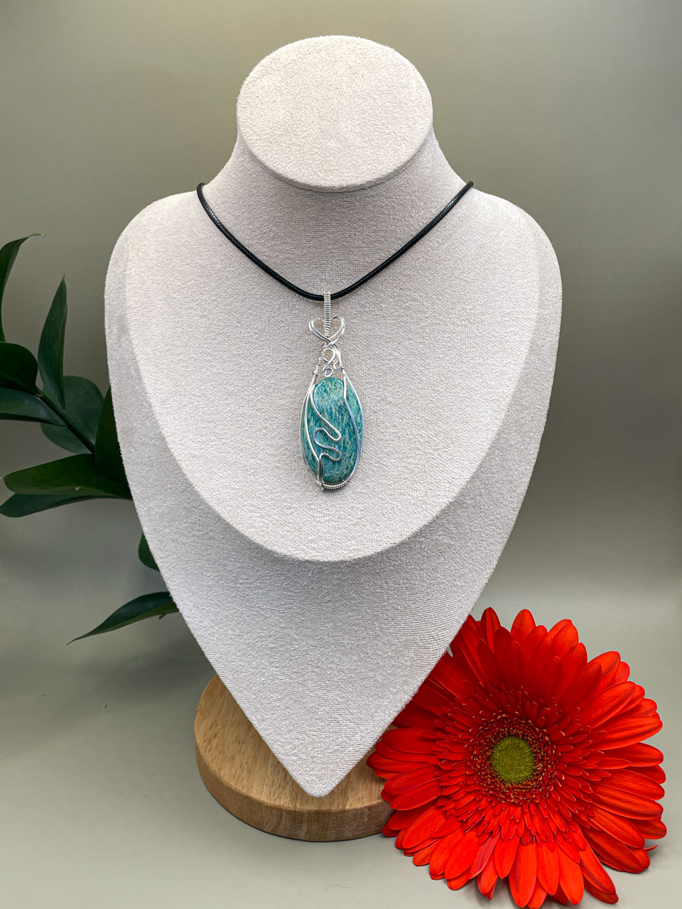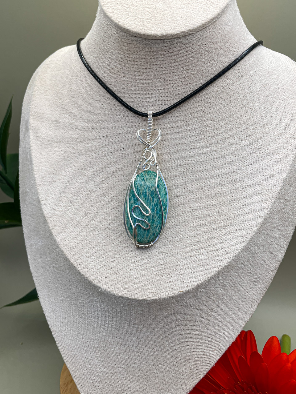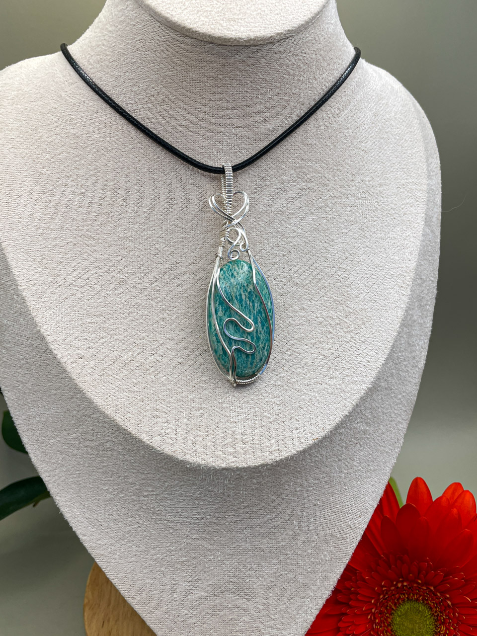 Velikost kamene včetně drátku: 2,4x7,3x0,7 cm. Přívěsek bude na voskované černé šňůrce.