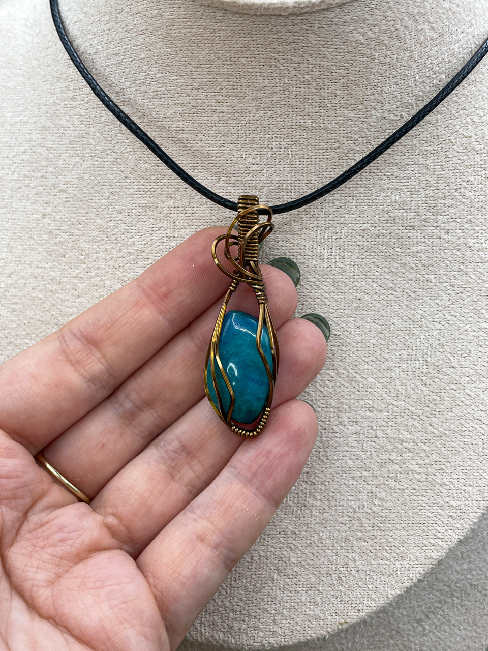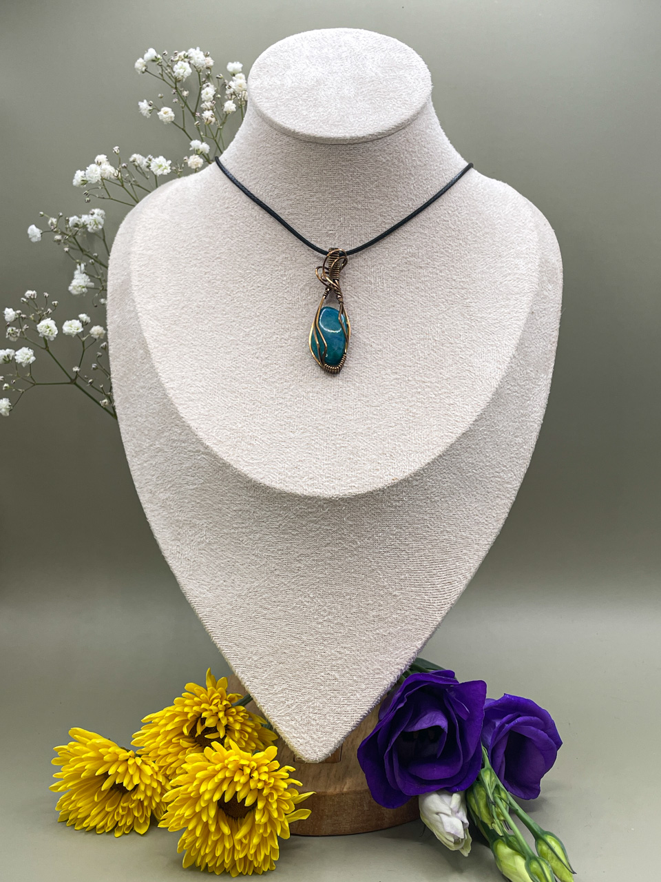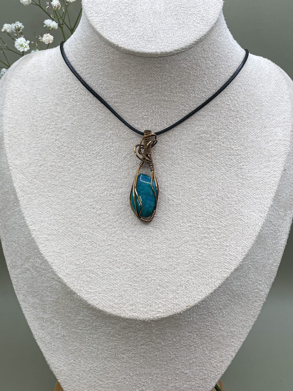 Velikost kamene včetně drátku: 1,4x4,9x0,7 cm. Přívěsek bude na voskované černé šňůrce.