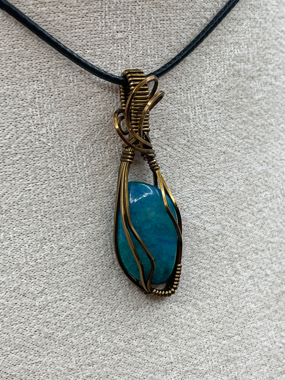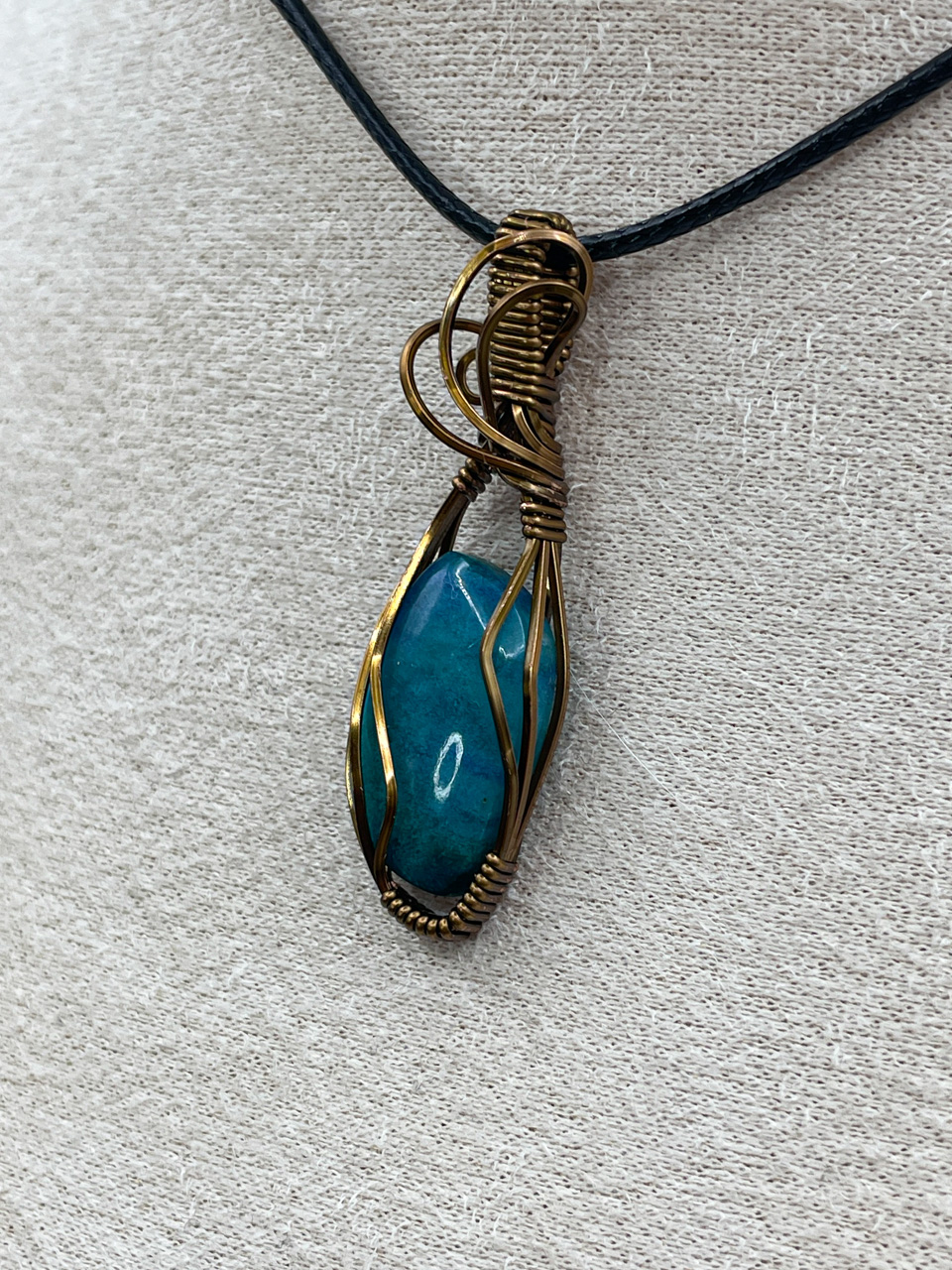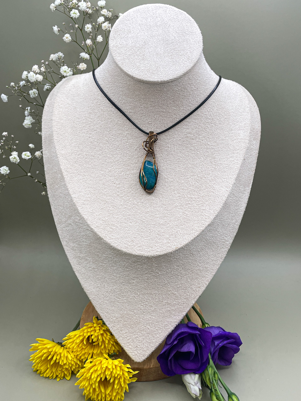 Velikost kamene včetně drátku: 1,4x4,9x0,7 cm. Přívěsek bude na voskované černé šňůrce.