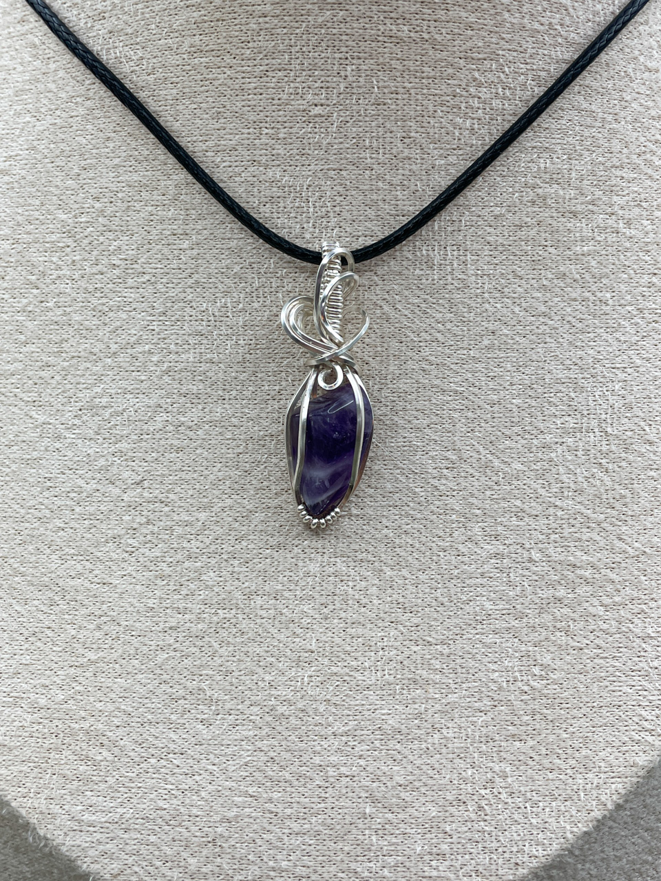 Velikost kamene včetně drátku: 1,1x3,9x0,8 cm. Přívěsek bude na voskované černé šňůrce.