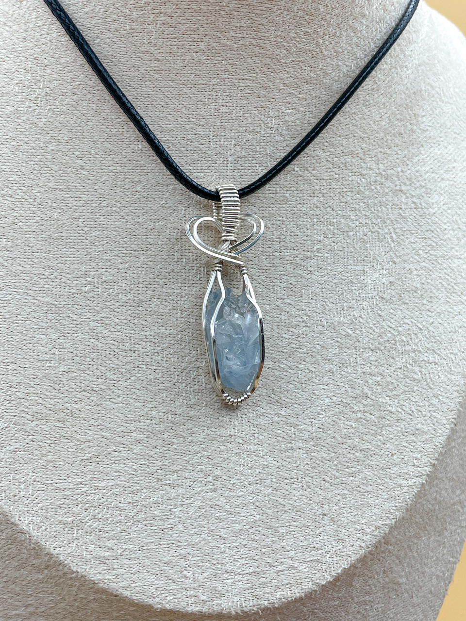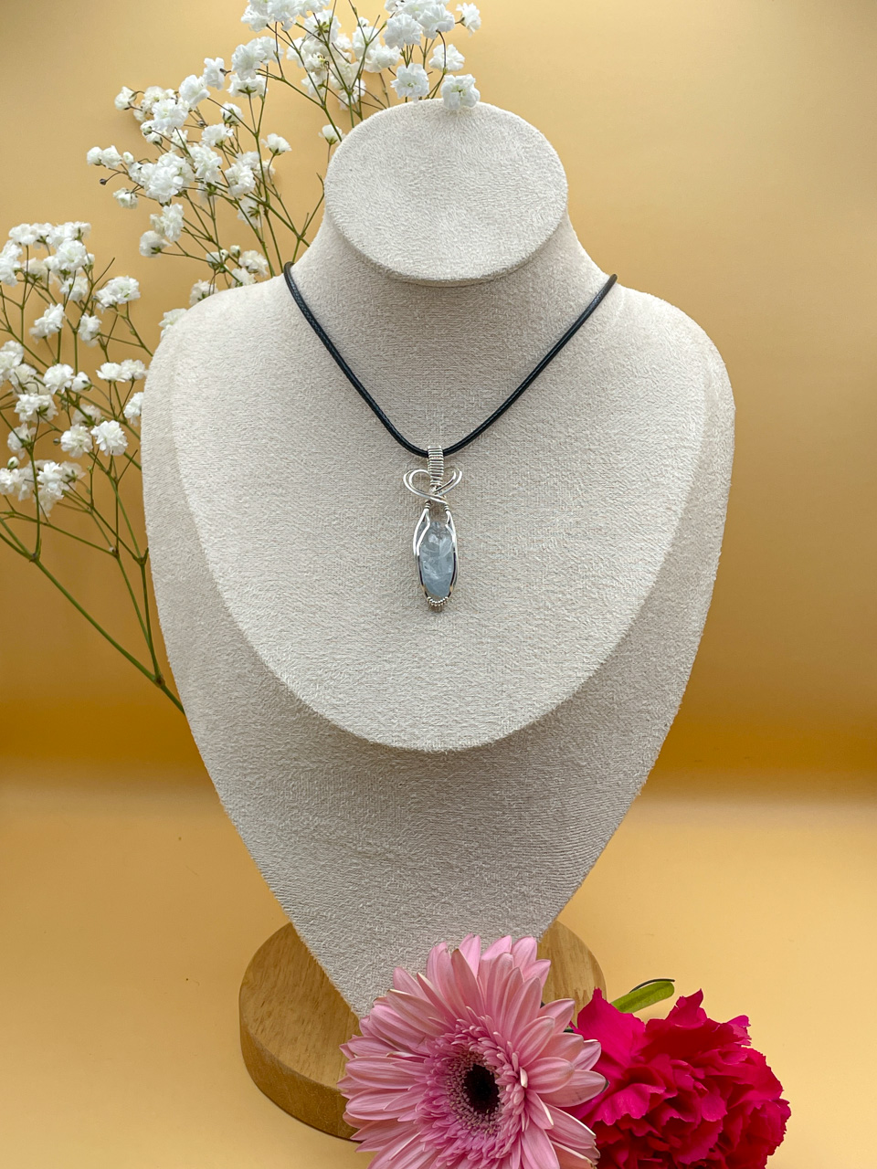 Velikost kamene včetně drátku: 1,2x4,7x1,3 cm. Přívěsek bude na voskované černé šňůrce.