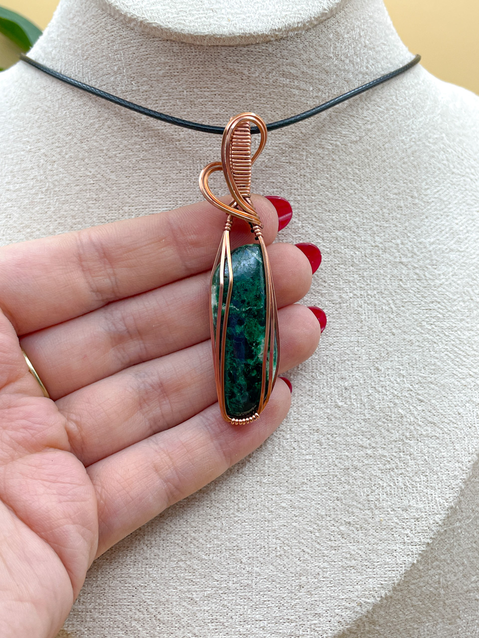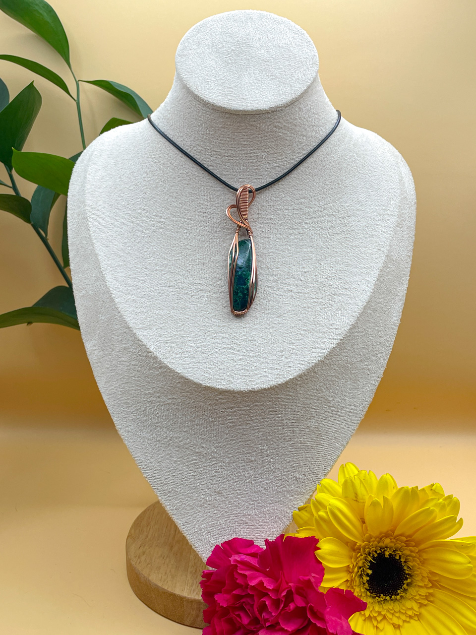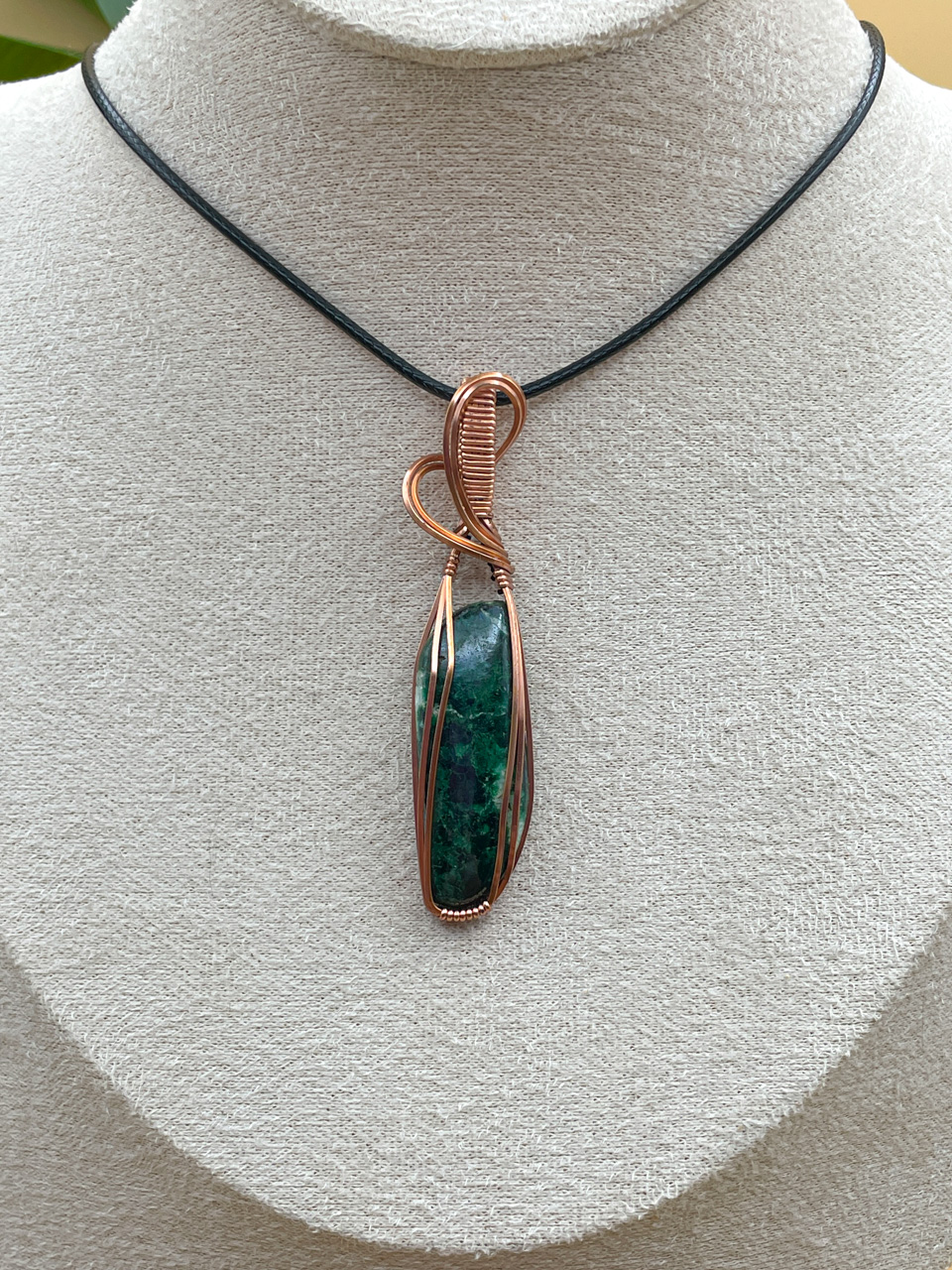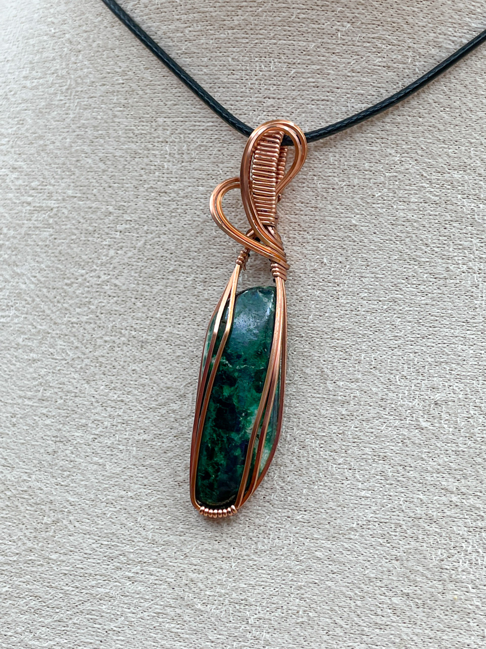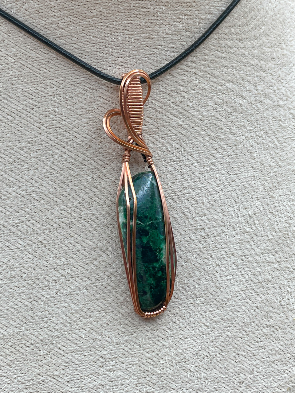 Velikost kamene včetně drátku: 1,9x6,3x0,6 cm. Přívěsek bude na voskované černé šňůrce.