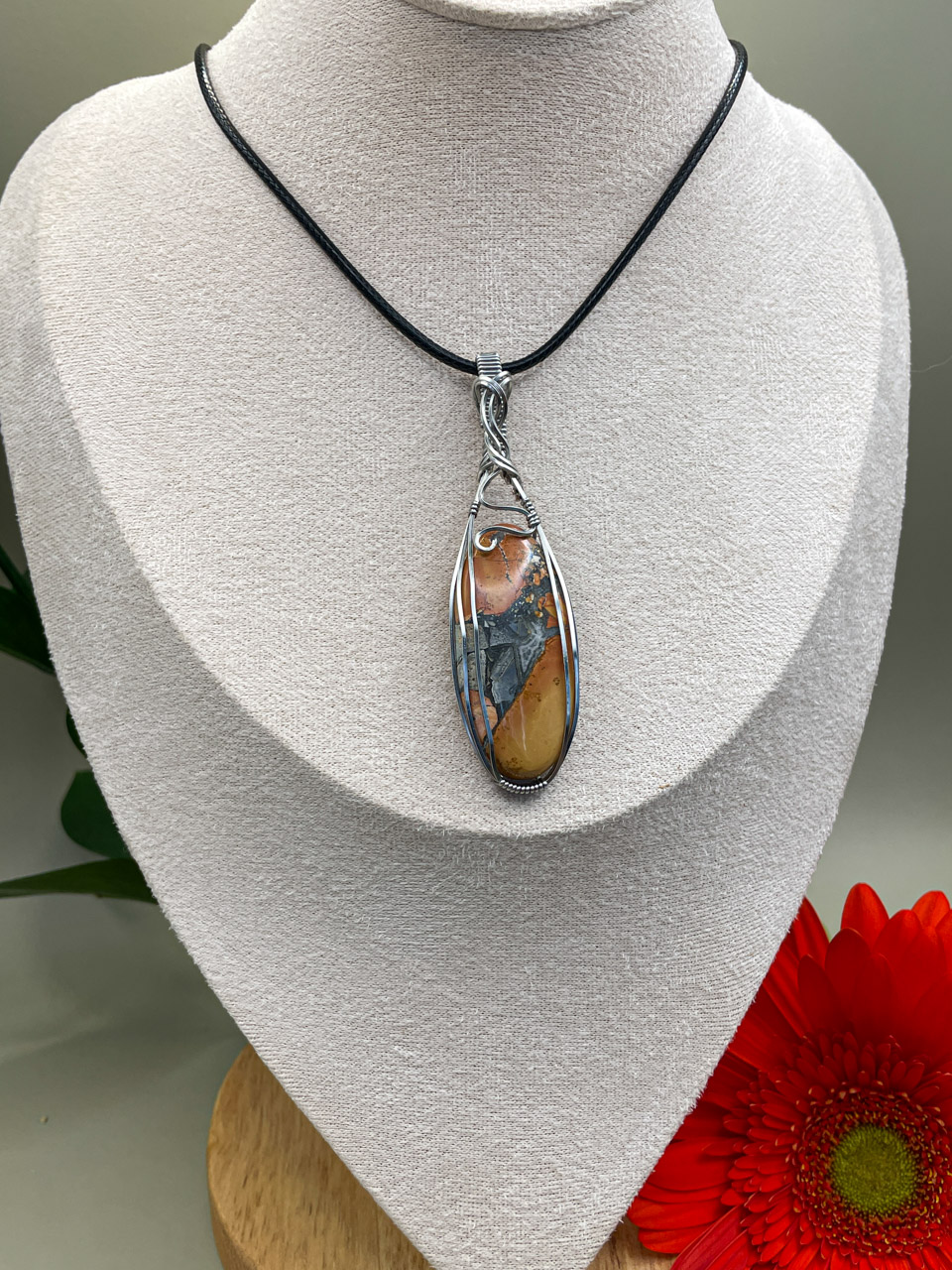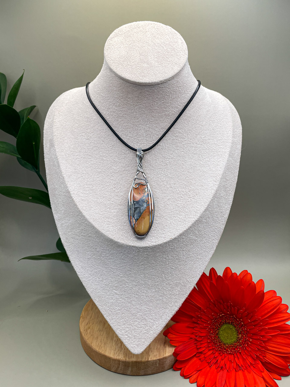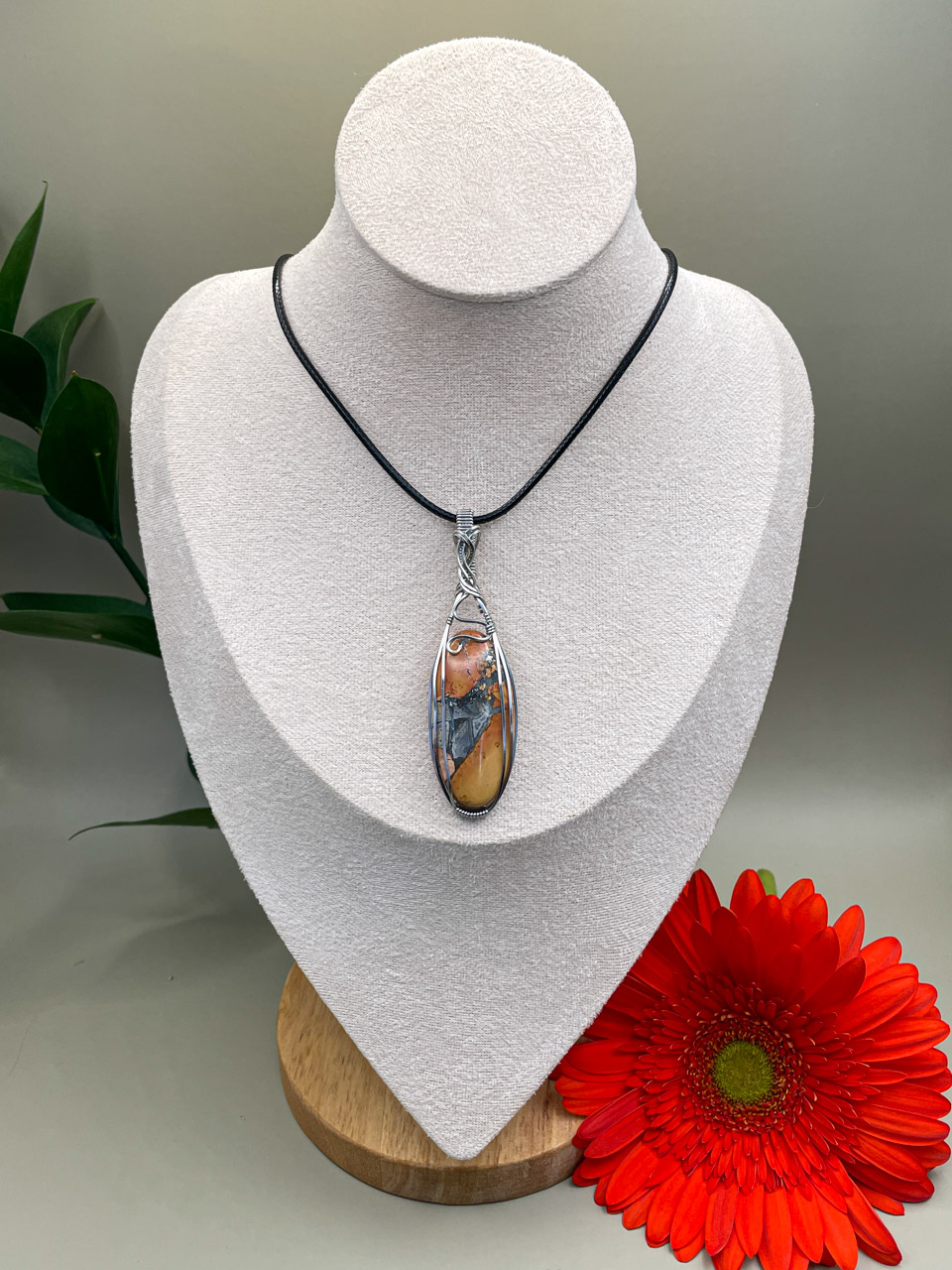 Velikost kamene včetně drátku: 2,2x 7,6x 0,6 cm. Přívěsek bude na voskované černé šňůrce.