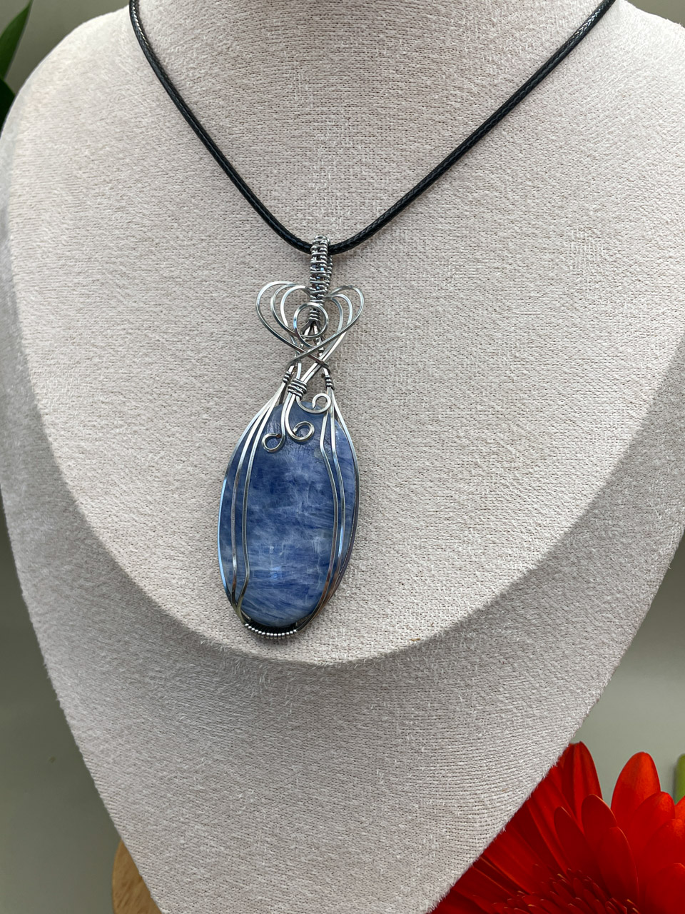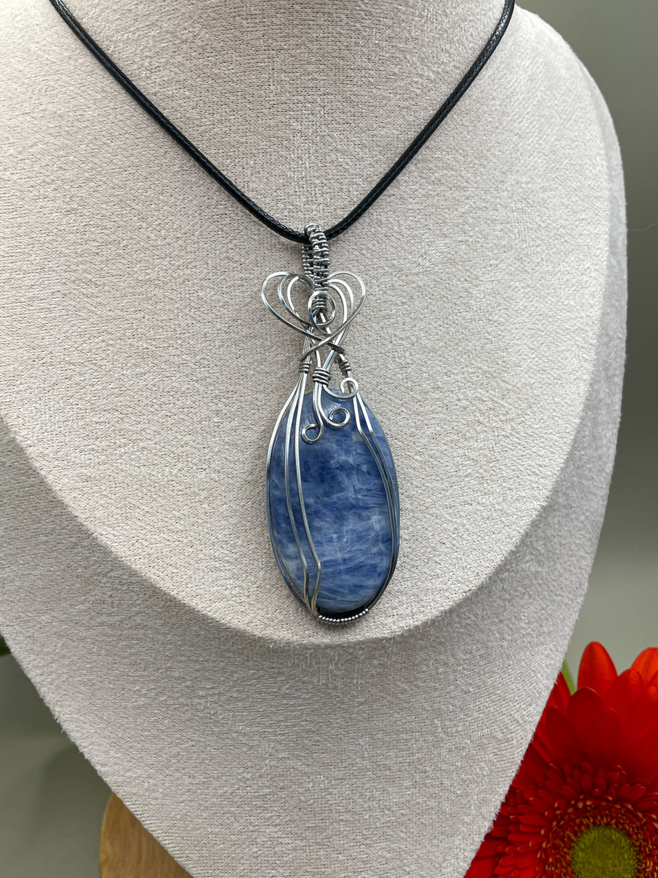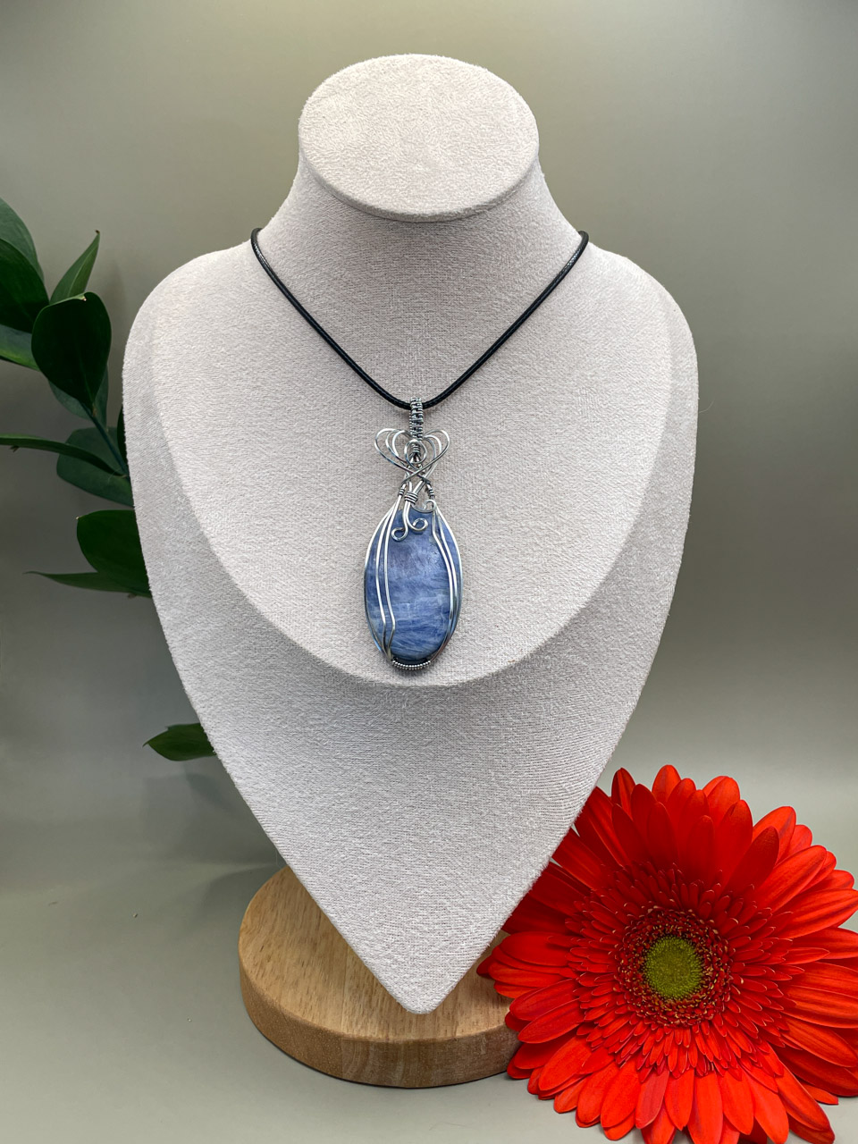 Velikost kamene včetně drátku: 2,3x8,2x0,7 cm. Přívěsek bude na voskované černé šňůrce.