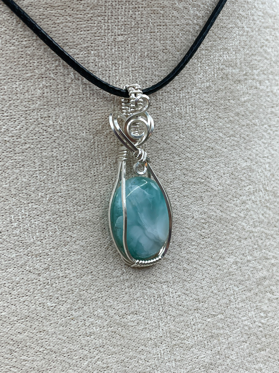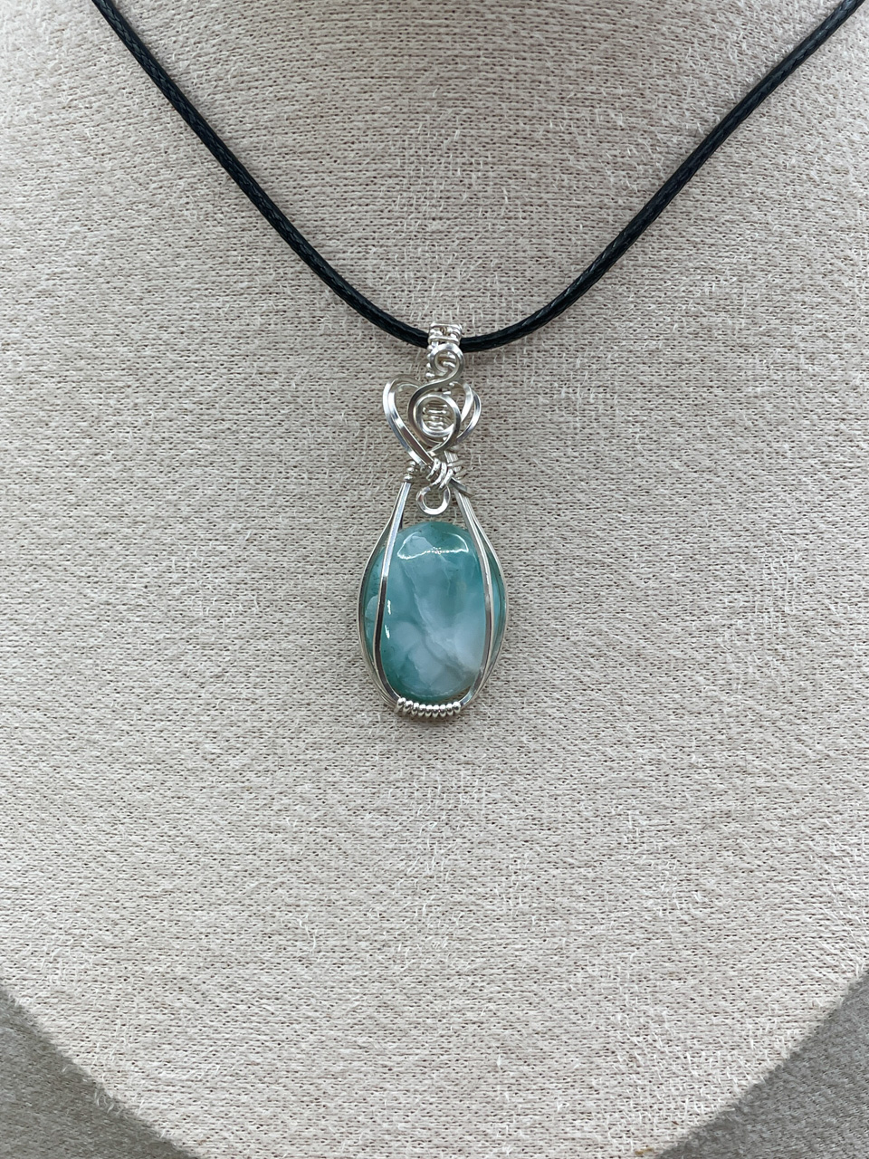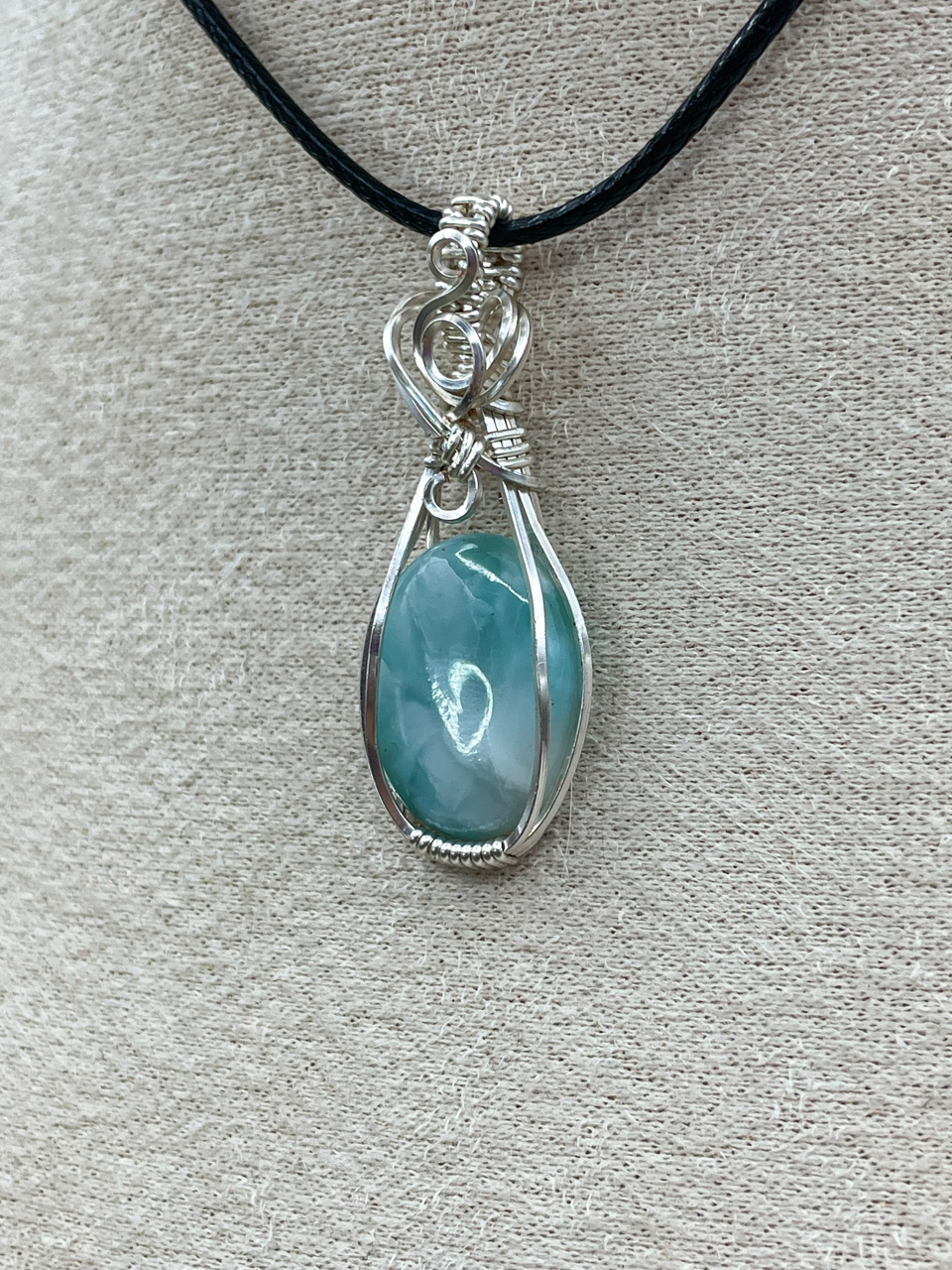 Velikost kamene včetně drátku: 1,7x4,4x0,6 cm. Přívěsek bude na voskované černé šňůrce.