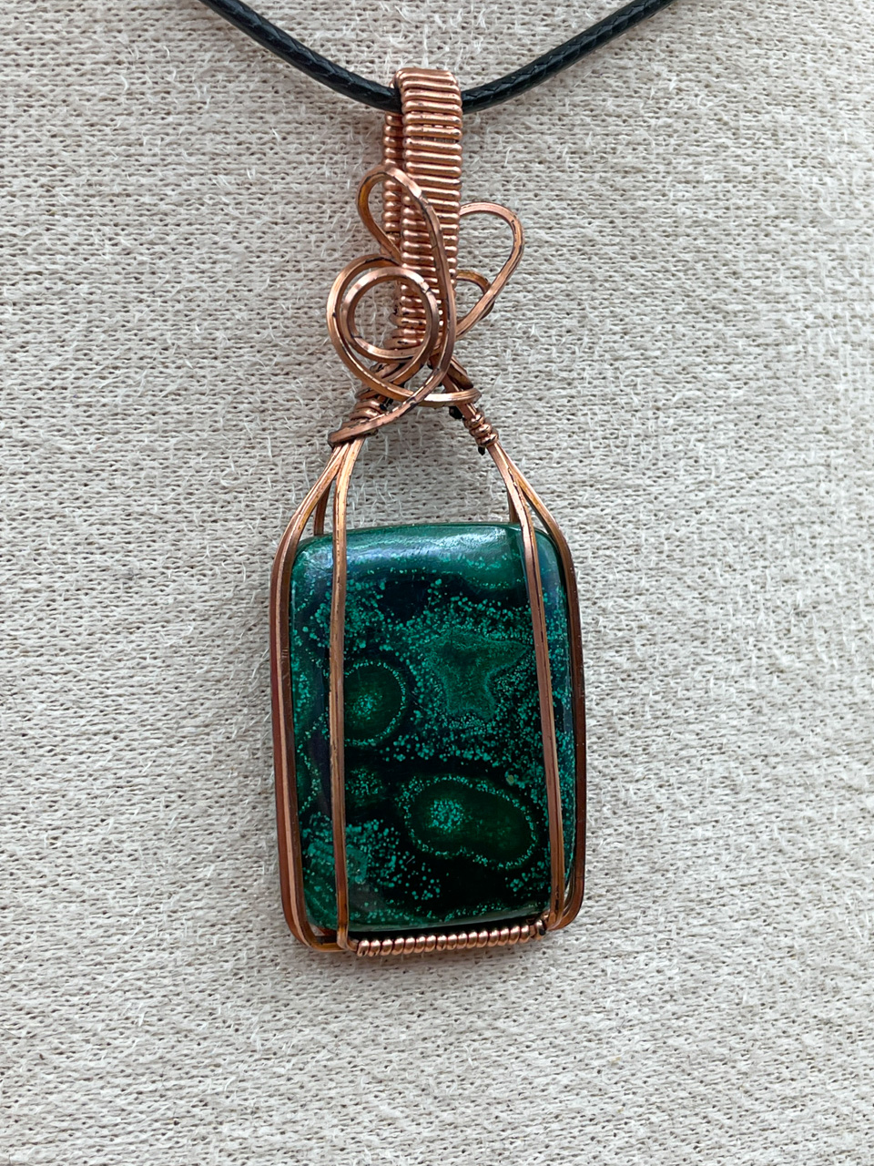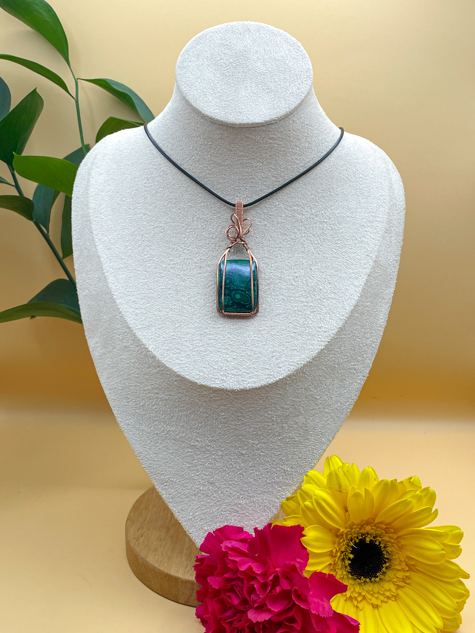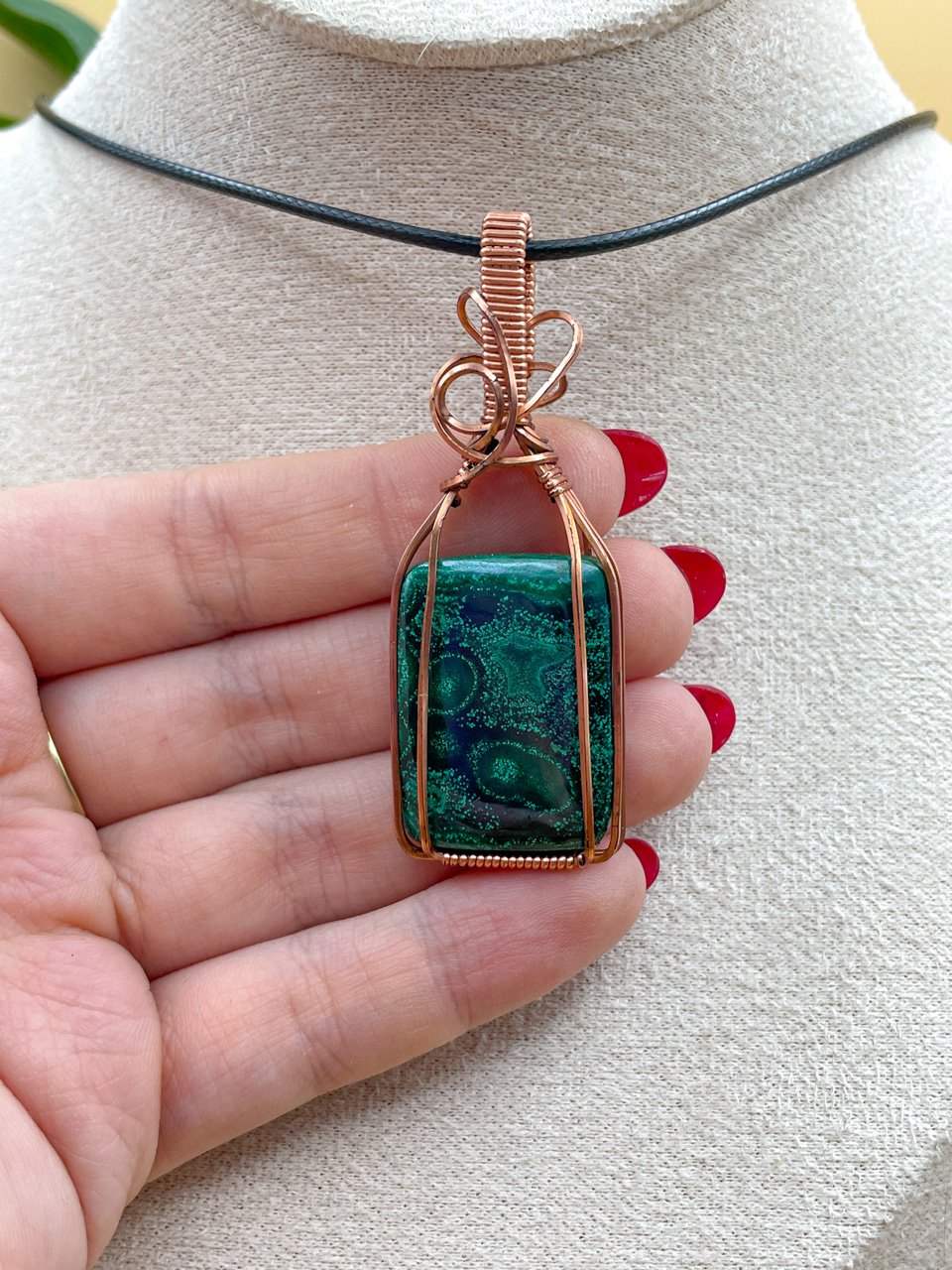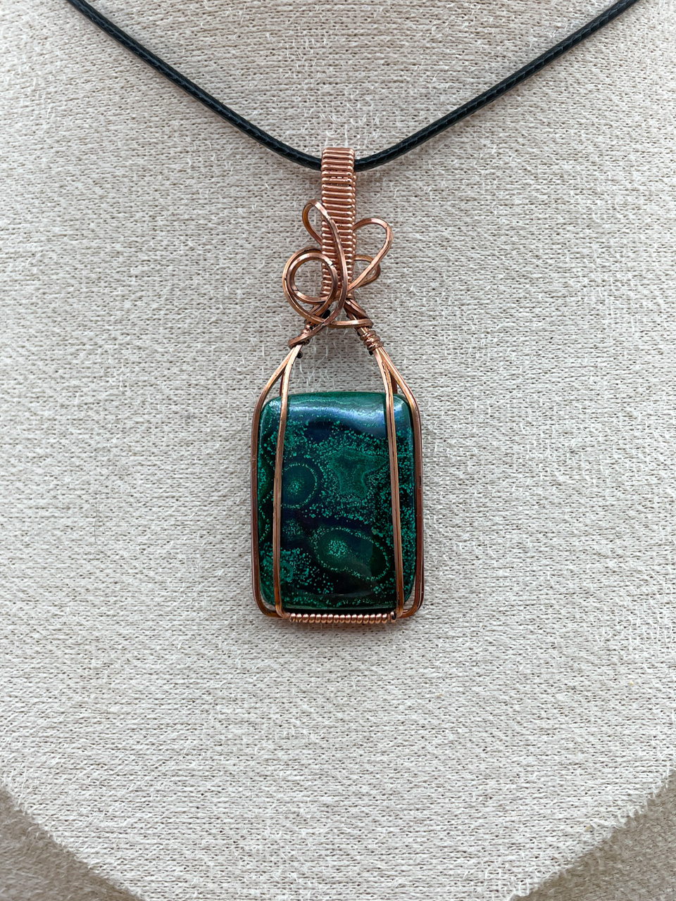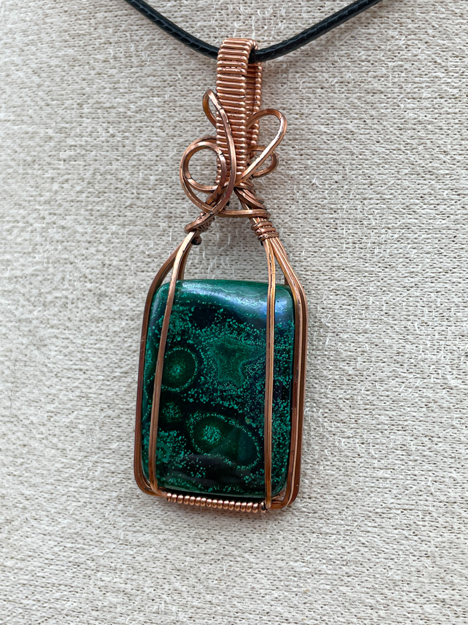 Velikost kamene včetně drátku: 2,2x5,8x0,6 cm. Přívěsek bude na voskované černé šňůrce.