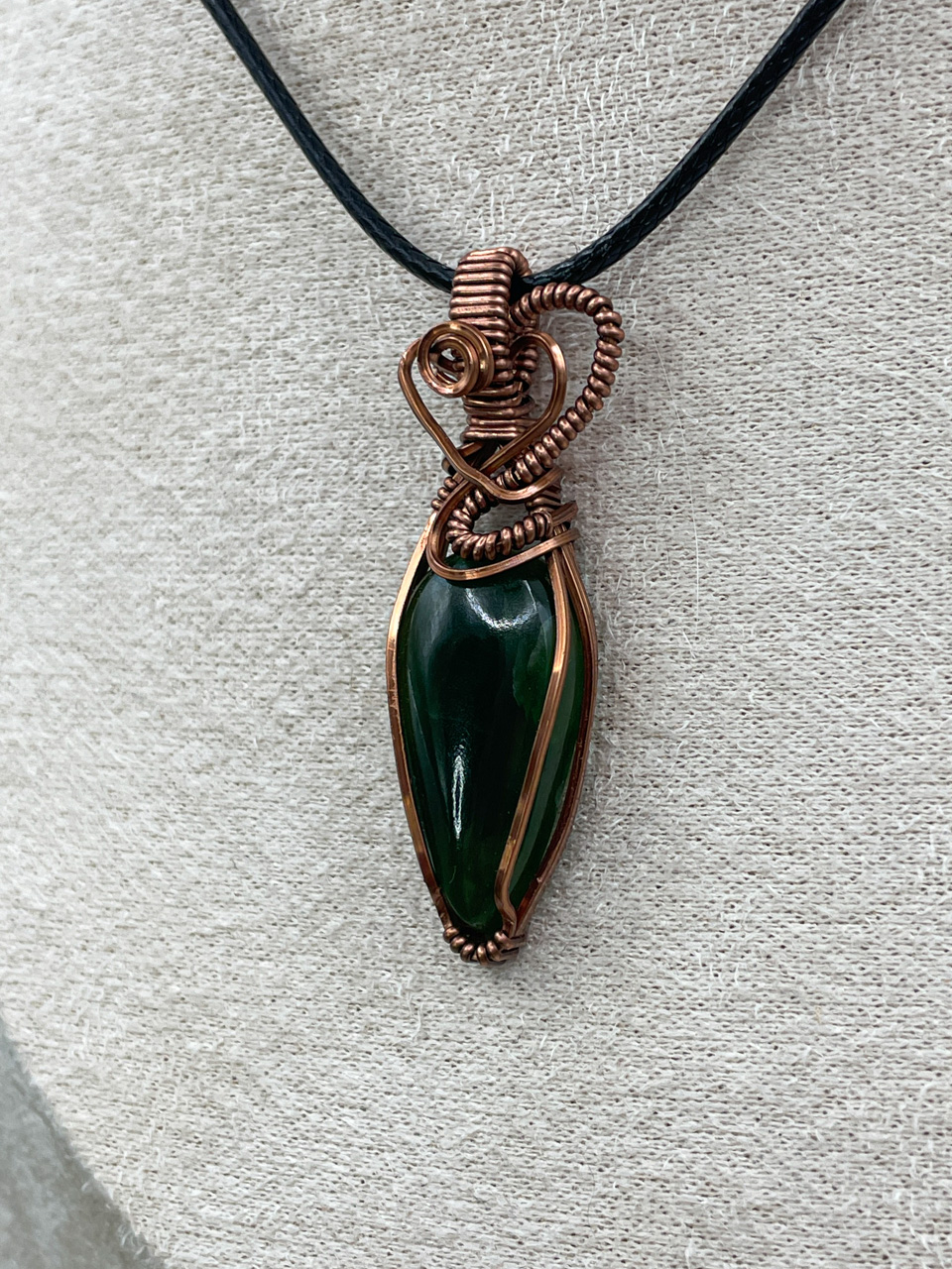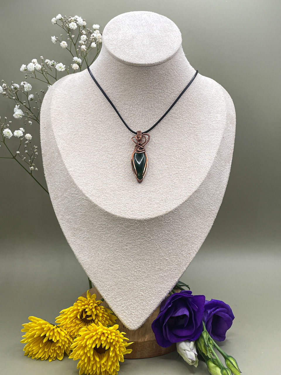 Velikost kamene včetně drátku: 1,4x4,4x0,6 cm. Přívěsek bude na voskované černé šňůrce.