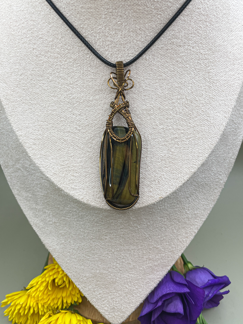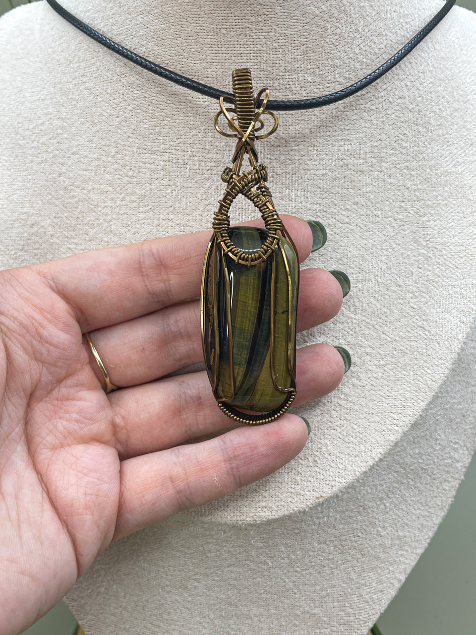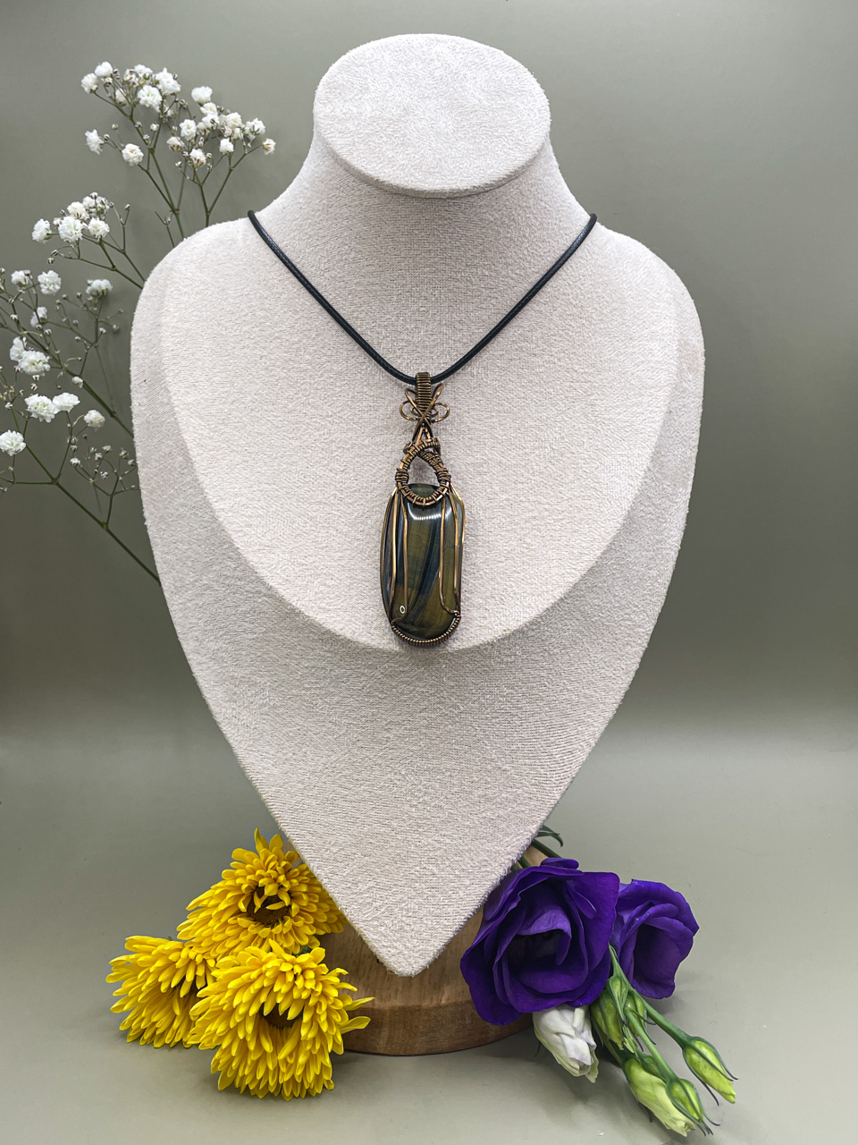 Velikost kamene, včetně drátku: 8,5x2,4x1,1 cm. Přívěsek bude na voskované černé šňůrce.